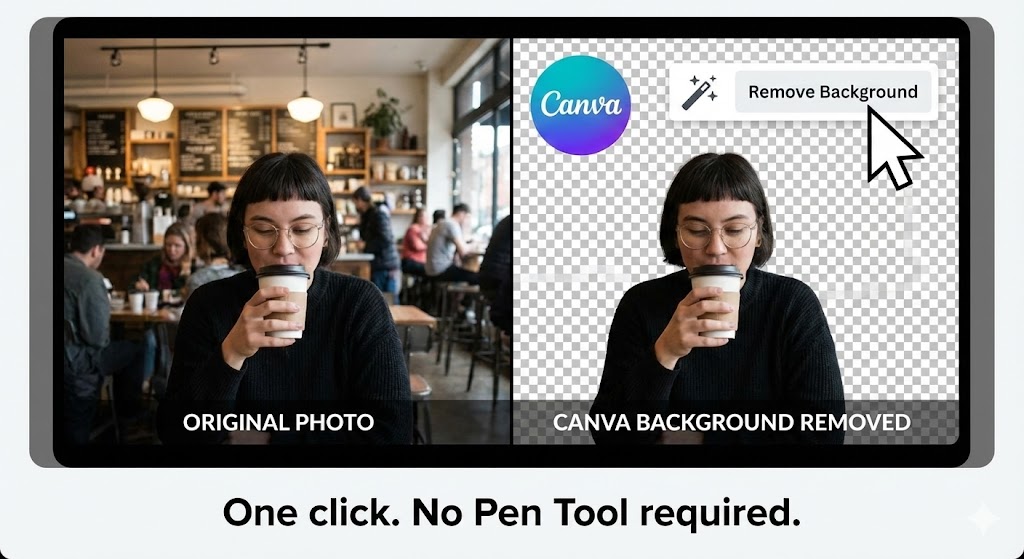 I remember spending 20 minutes in Photoshop using the Pen Tool to cut a person out of a photo. In Canva, I click one button: “Edit Photo > BG Remover.” Five seconds later, it’s done. And honestly? It’s often cleaner than my manual work. It feels like black magic.