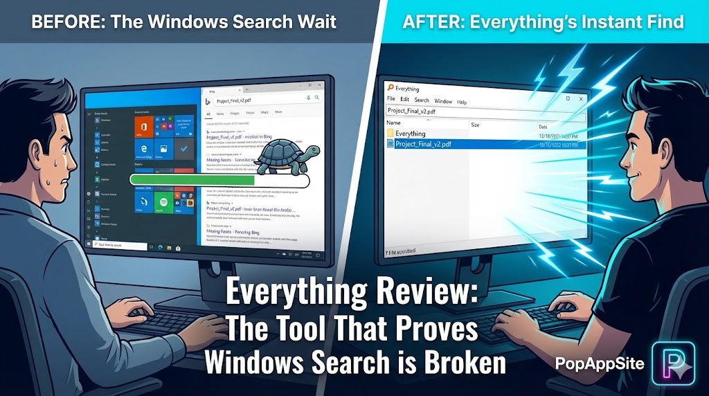 We need to talk about the elephant in the room. The Windows Search bar (you know, the one next to the Start button) is… terrible. I type “Invoice_2024.pdf”, and what does Windows do? It opens Edge and searches Bing for “How to make an invoice.” I don’t want Bing! I want my file! I spent years waiting for that little green loading bar to crawl across the screen.