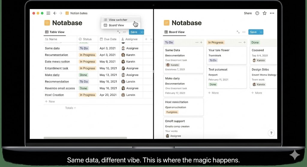 This is the feature that scares beginners, but it’s the superpower. I created a list of “Blog Post Ideas.” With one click, I turned that list into a Kanban Board (like Trello). With another click, I turned it into a Calendar. Same data, different views. I realized I could build my own custom CRM, habit tracker, and finance planner without writing a single line of code.